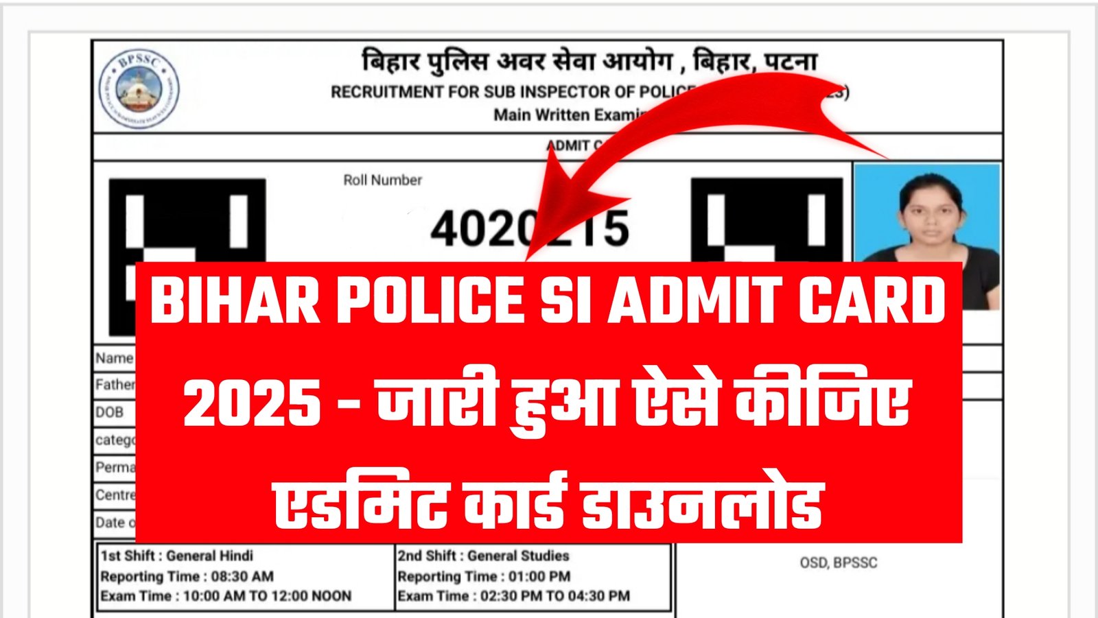 Bihar Police Si Admit Card 2026 (OUT) Download @bpssc